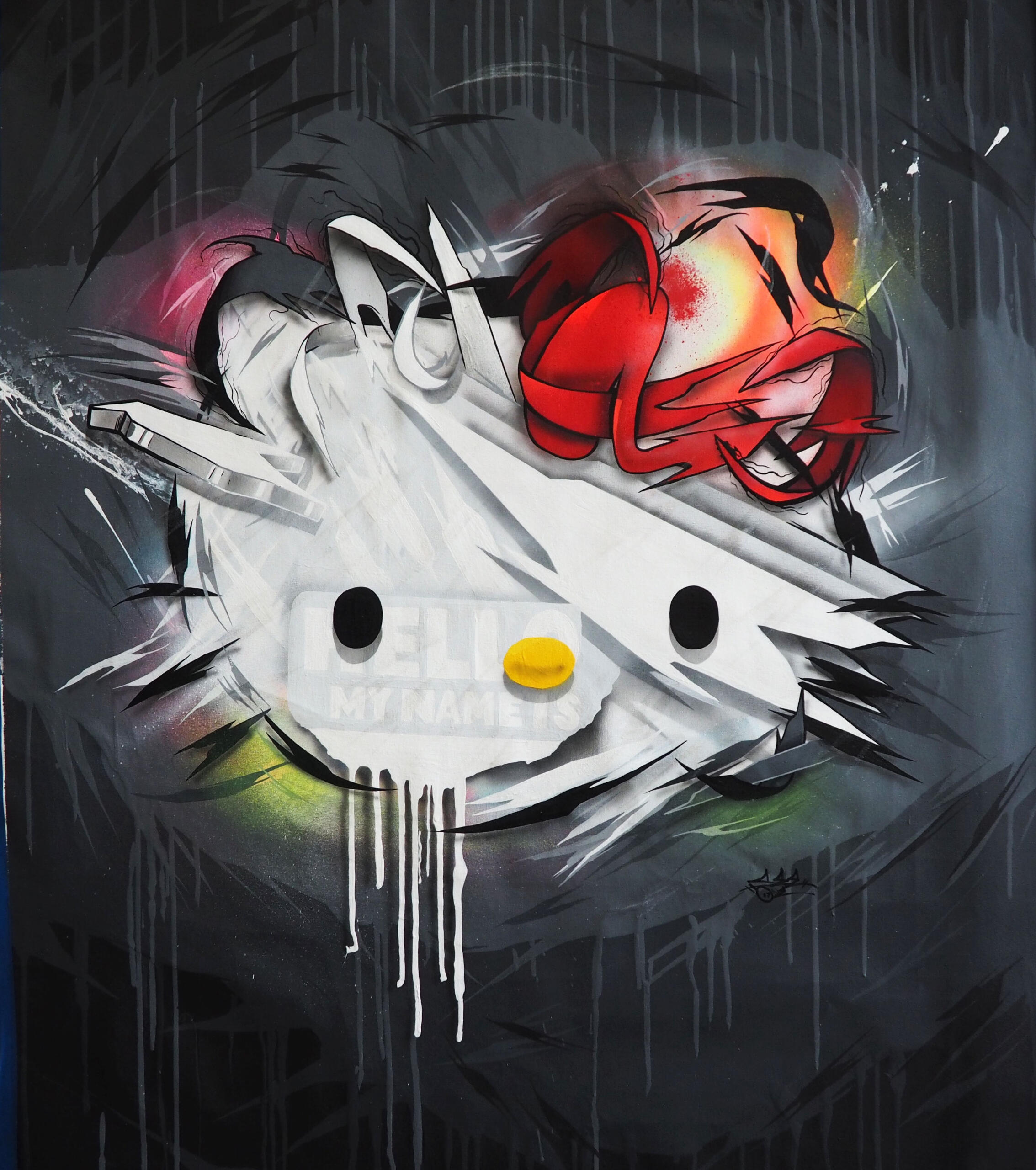 "Hola Gato" - 30" x 40" Acrylic, Spray paint, Airbrush, 2017