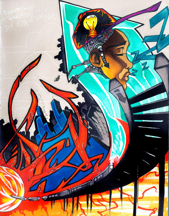 "Epiphany" - 40" x 50" Acrylic, Spray paint, Airbrush, 2017