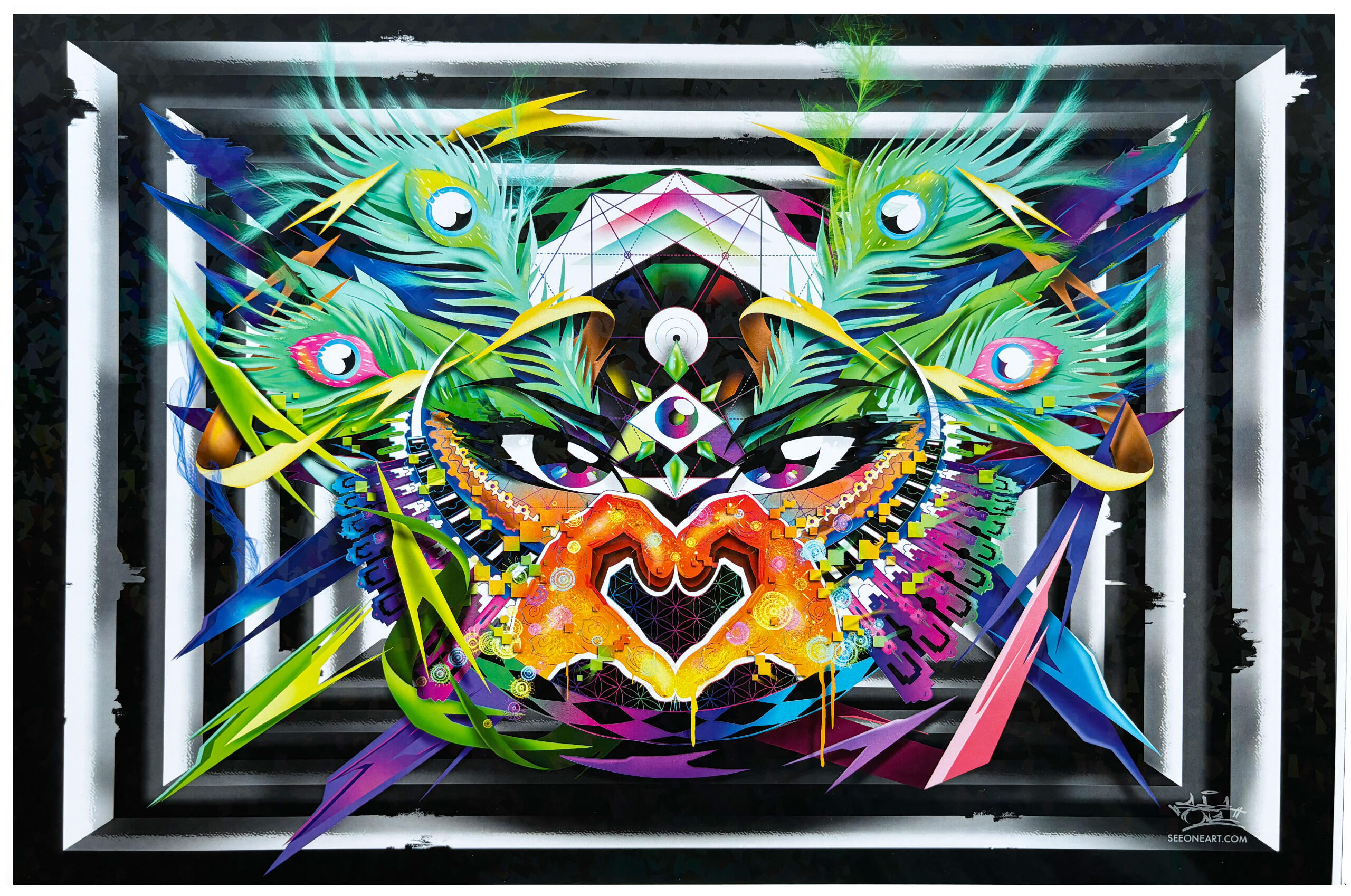 See One is also involved in the music festival scene and has created official merchandise and lapel pins for Wakaan Music Festival at Mulberry Mountain. He has painted at Hulaween, Electric Forest, Brainquility, Big Dub, Gem and Jam and more in either a live painting or mural aspect of event production.